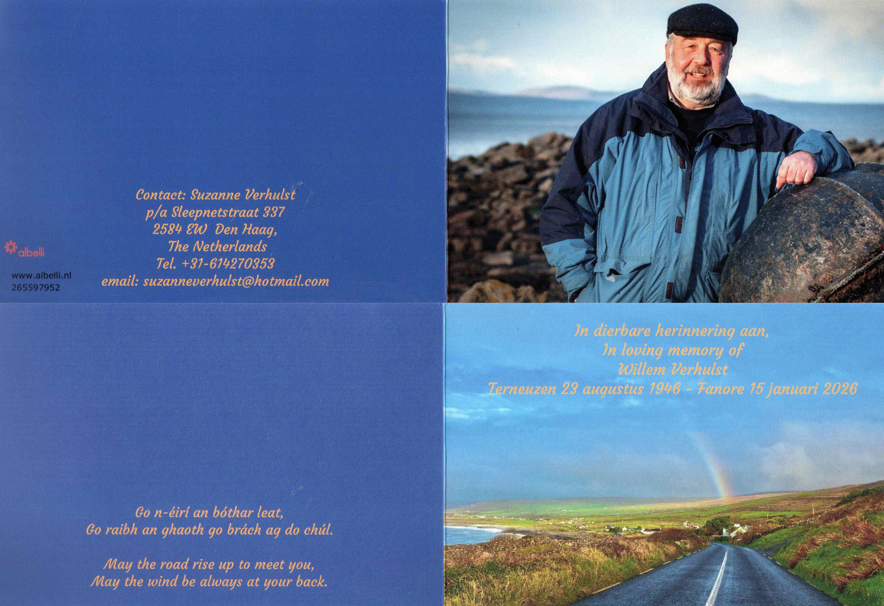 Willem was nog steeds betrokken bij onze vereniging, ook al woonde hij de bijeenkomsten niet meer bij. Logisch, want hij woonde al heel lang in Ierland. Los van de e-mail correspondentie schreef hij nog ieder jaar een eindejaarwens aan alle leden.